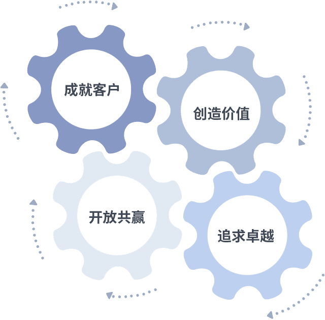 成就客户是一切决策的出发点,创造价值是衡量所有工作的标准,追求卓越是尊龙时凯做事做人的态度,开放共赢是尊龙时凯的格局也是最终的结果。价值观的齿轮环环相扣,推动着组织里的每个人不断向前。